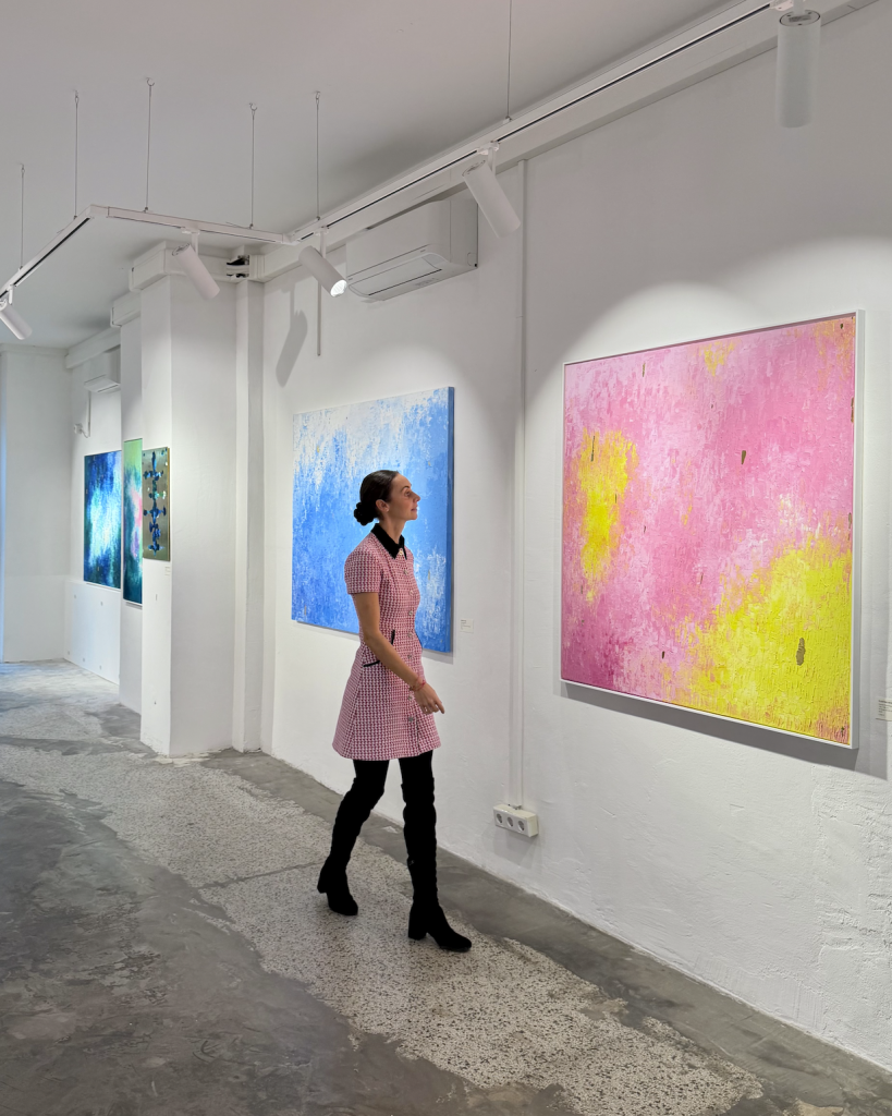Mein Studium in Retail Design in Düsseldorf und ein Semester an der Akademie der Bildenden Künste in Krakau (Fakultät der Malerei) haben mir die Basis gegeben, meine Leidenschaft zu professionalisieren. Durch den experimentellen Einsatz neuer Techniken konnte ich einen eigenen Stil entwickeln, geprägt von ästhetischen Farbkompositionen und der kraftvollen Wirkung von 24-karätigem Blattgold.