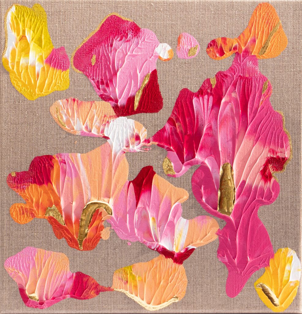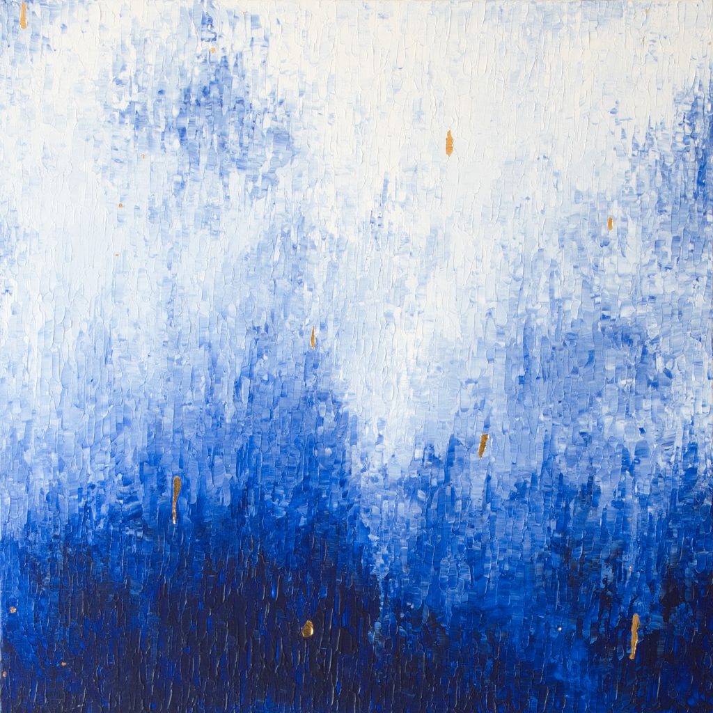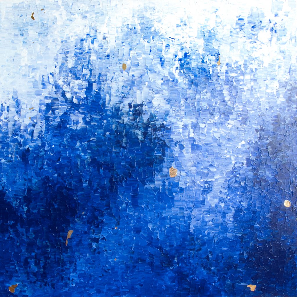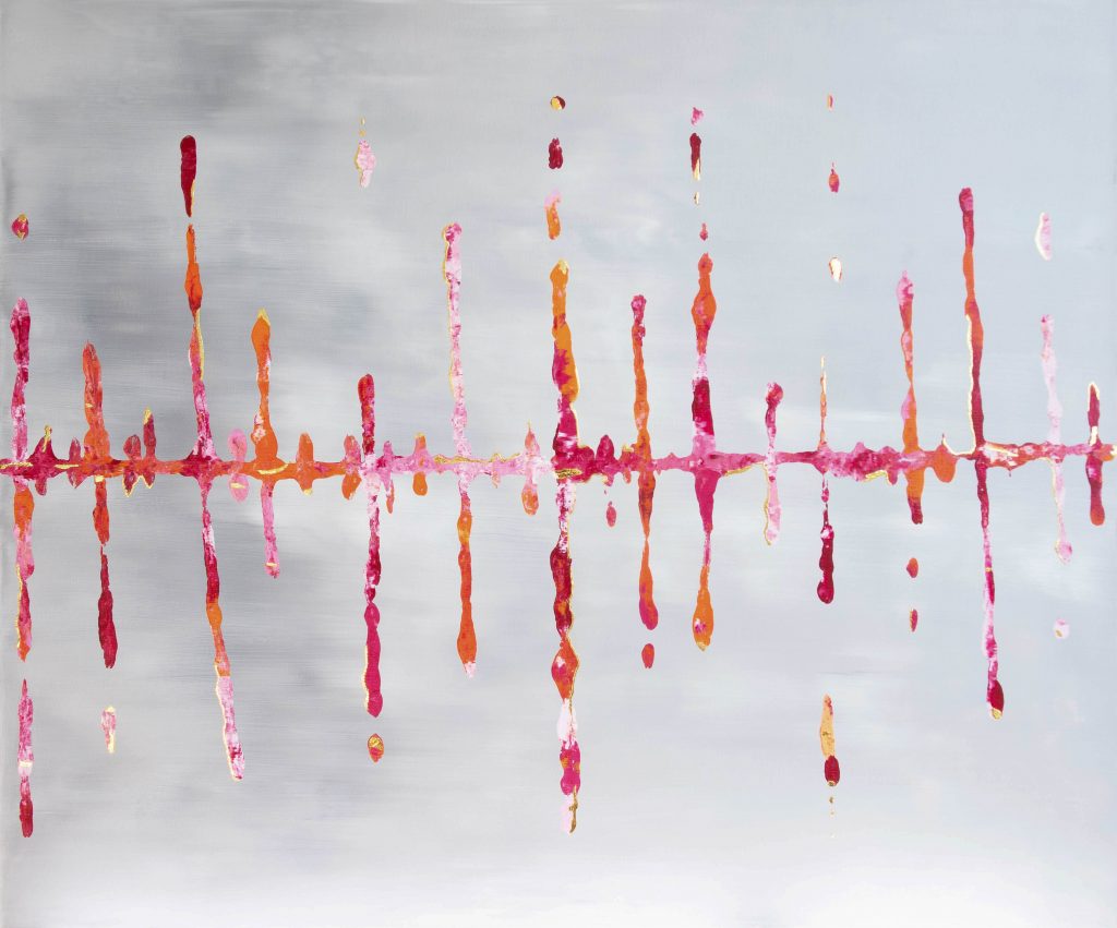 Abstrakte Kunstwerke mit eleganten Akzenten aus purem 24-karätigen Gold. Inspiriert von Farben und Formen der Natur entstehen ortsspezifische Unikate.