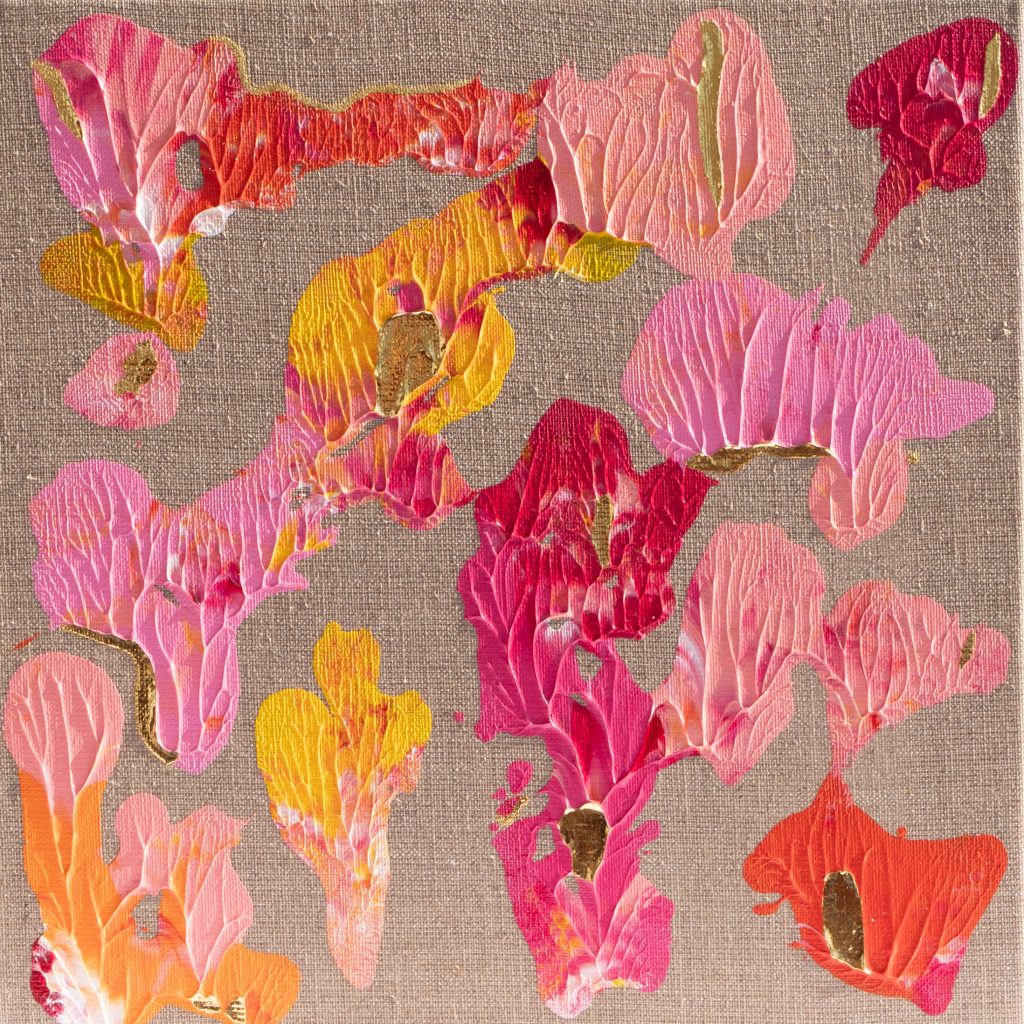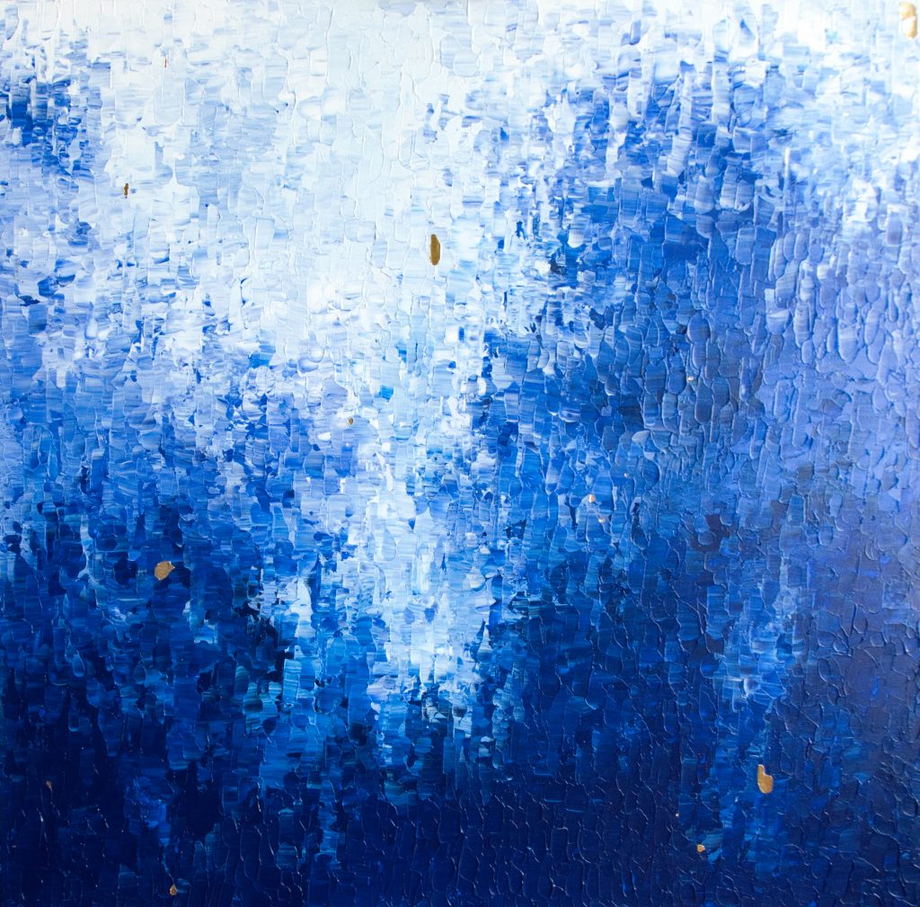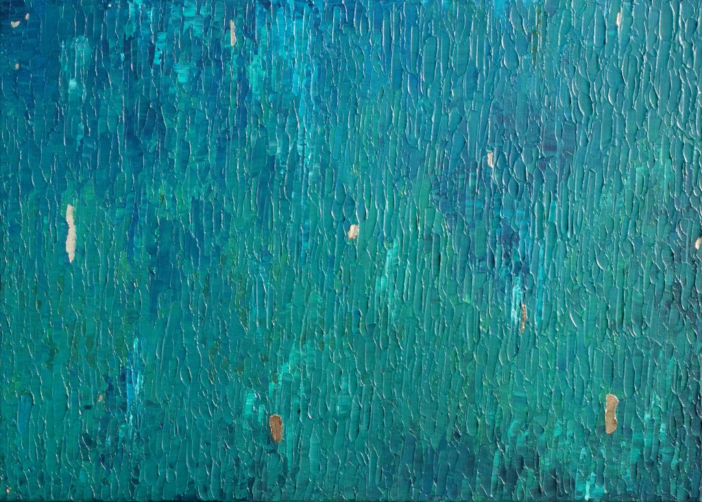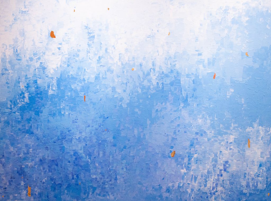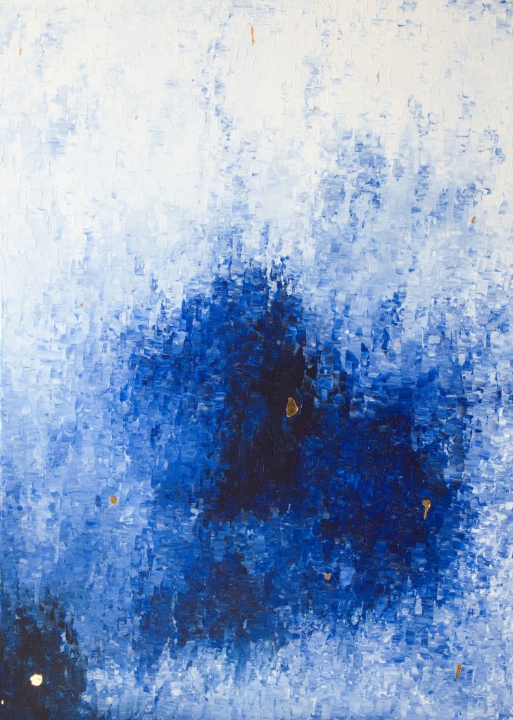 Abstrakte Kunstwerke mit eleganten Akzenten aus purem 24-karätigen Gold. Inspiriert von Farben und Formen der Natur entstehen ortsspezifische Unikate.